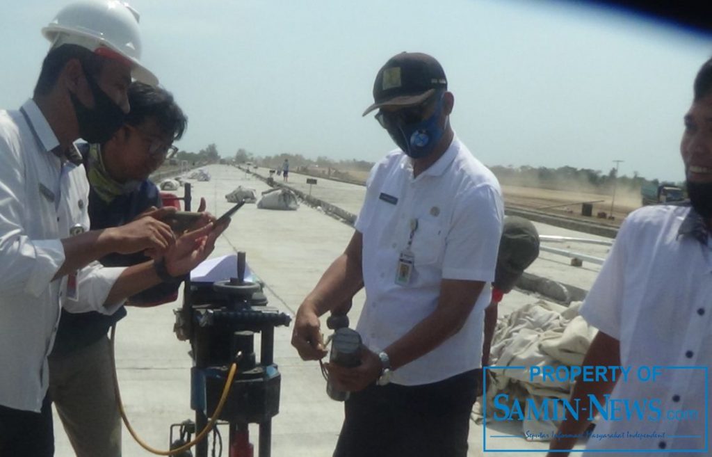 Dengan demikian, kata Site Manajer rekanan yang bersangkutan, Amin, dalam melaksanakan pekerjaan beton rigid ini harus benar-benar maksimal agar saat dilakukan test pengambilan sampel hasilnya sesuai standar yang direncanakan. ”Buktinya, hasil test pengambilan sampel dalam bentuk silinder tersebut setelah diukur panjangnya tepat mencapai 25 cm, dan hal itu menunjukkan ketebalan beton rigid tersebut adalah 25 cm,”tandasnya.
