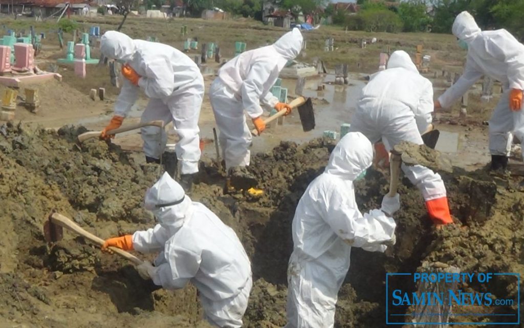 SAMIN-NEWS.com, PATI – Untuk melakukan pemakaman dengan standar protokol Covid-19, Tim Pemakaman dari Badan Penanggulangan Bencana Daerah (BPBD) Kabupaten Pati, Sabtu (24/10) tadi pagi sekitar pukul 09.30 terlebih dahulu harus menguras air dari lubang makam. Sebab, meninggalnya almarhum seorang warga Desa Pecangaan, Kecamatan Batangan sudah berlangsung Jumat (23/10) malam, tapi pemakaman yang akan dilaksanakan tadi malam terpaksa ditunda.