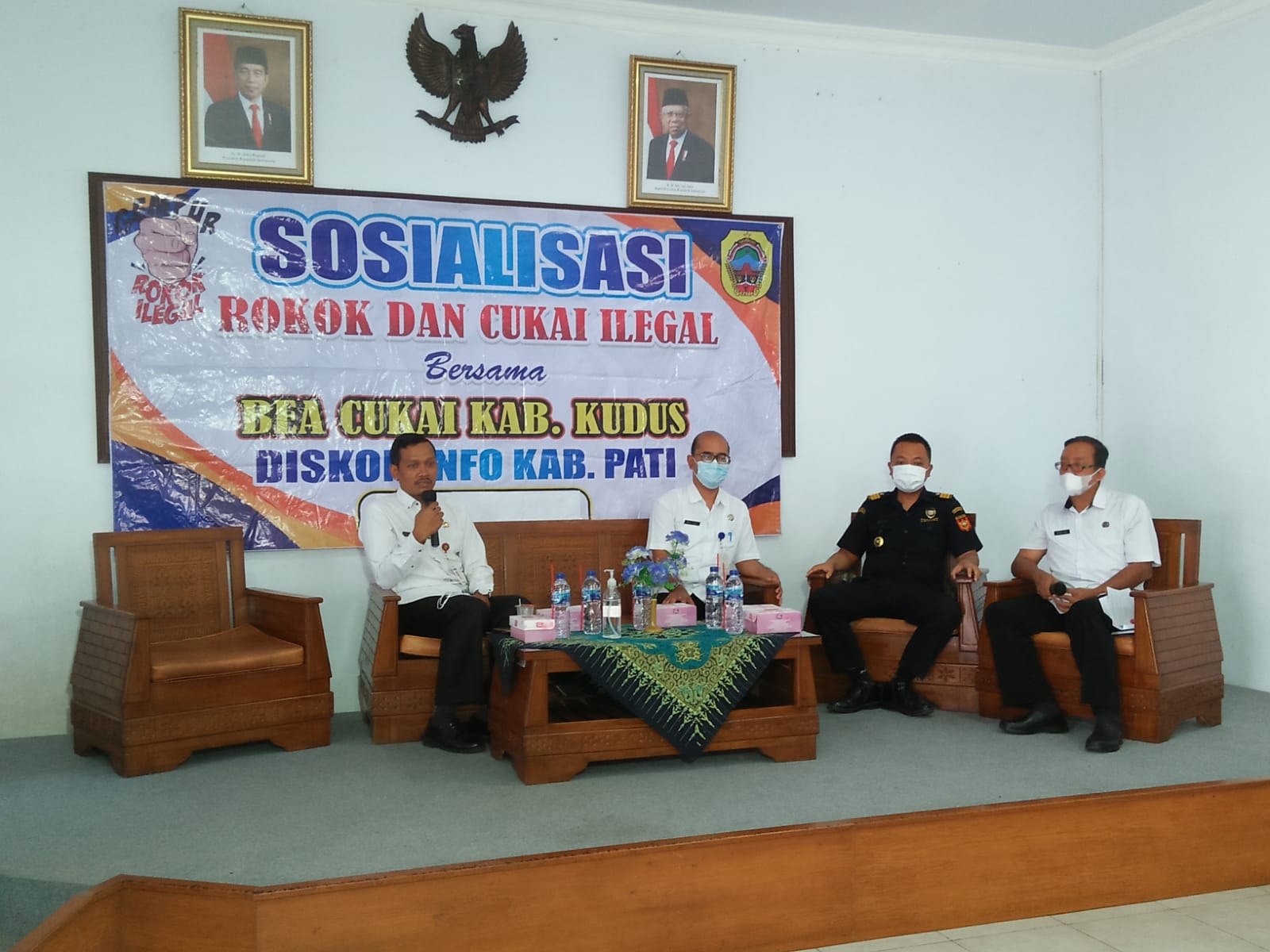 Kegiatan ini dalam bentuk Sosialisasi Gempur Rokok Ilegal melalui talkshow yang dibalut dengan pertunjukan hiburan kesenian campursari di Aula Diskominfo Kabupaten Pati, Rabu (10/8/2022).