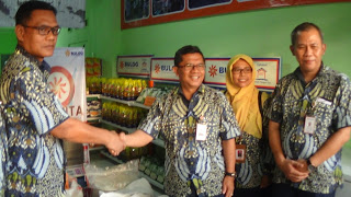 Kepala Buog Divre Jawa Tengah, Mentoba Sukit Tedjo Moeljono (tengah) menyampaikan ucapan selamat kepada Kepala Bulog Sub-Divre Pati Muhammad Taufik bersama Waka Sub-Divre Yanto Nurdianto atas dibukanya Toko Pangan Pati Ayu, di Jl Kolonel Sunandar (utara) Pasar Puri Pati, Kamis petang (12/9) kemarin.(Foto:SN/aed)