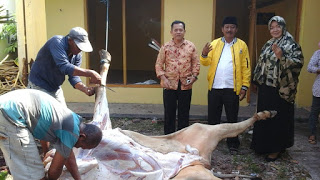 Penyembelihan hewan kurban sapi dan kambing saat Hari Raya Idul Adha beberapa waktu lalu.(Foto:SN/dok)