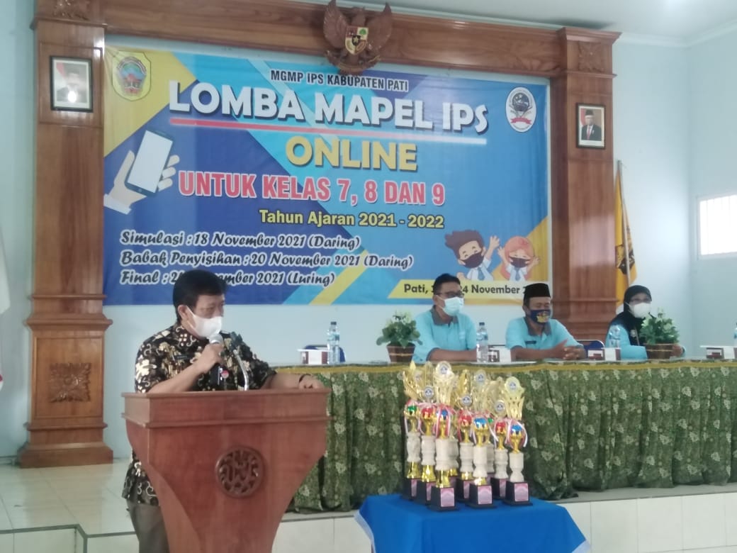 SAMIN-NEWS.com, PATI – Lomba Mapel IPS oleh Musyawarah Guru Mata Pelajaran (MGMP) IPS Kabupaten Pati secara resmi telah dibuka oleh Kepala Dinas Pendidikan dan Kebudayaan (Disdikbud), Winarto di Aula SMP Negeri 4 Pati, Sabtu (20/11/2021).