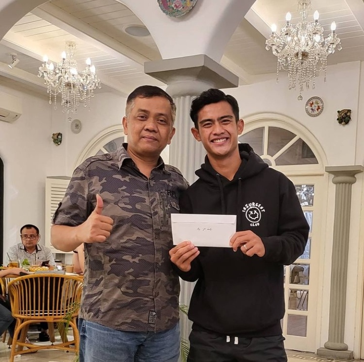 Komisaris PSIS Semarang, Junianto (kiri) saat melepas pratama Arhan (kanan). Instagram @anto_van_java