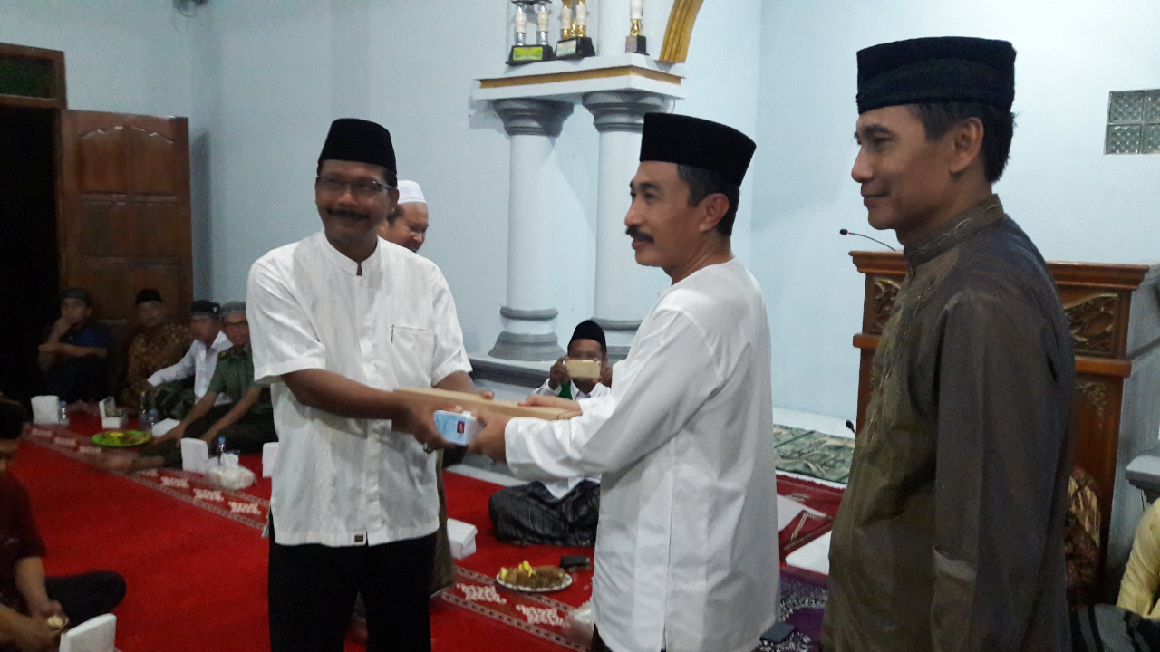 Bupati Haryanto didampingi Kepala Dinas Kependudukan dan Pencatatan Sipil (dispendukcapil) Kabupaten Pati, Rubiyono, kembali menyerahkan E-KTP selesai shalat tarawih bersama di Kayen.(Foto:SN/aed)