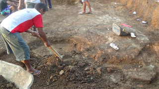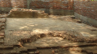 Kondisi terakhir struktur bangunan bermaterial batu merah atau batu bata yang ditemukan terpendam pada kedalaman bawah tanah sekitar 1 meter, di lingkungan Punden Mbah Gamirah, di Dukuh Cacah, Desa Sukoharjo, Kecamatan Margorejo, Pati.(Foto:SN/aed)