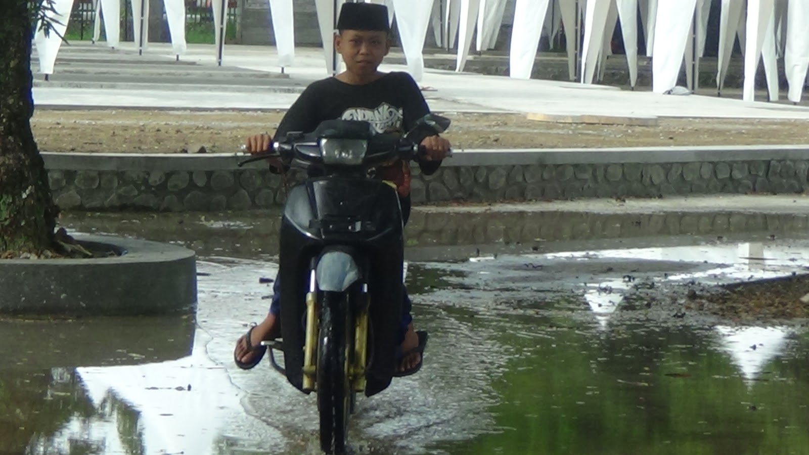 Di sisi lain, masih ada bagian lokasi sisi timur-selatan jalan antartenda jika turun hujan ,masih menyisakan genangan air yang tak bisa mengalir, karena saluran pembuang tidak berfungsi maksimal. Padahal turunnya curah hujan saat ini belum terlalu ekstrem, sehingga masih membutuhkan pembenahan.