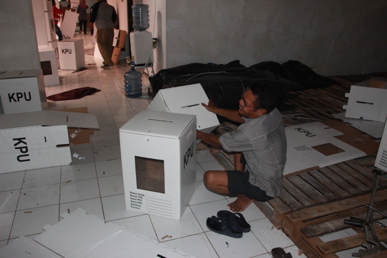Hasil perakitan yang sudah selesai tengah ditumpuk dan dihitung satu per satu di gudang penyimpoanan.(Foto:SN/dok-kpu-aed)
