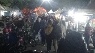 - Jika tiba-tiba pukul 21.30 ternyata turun gerimis, hal itu juga cara ,agar siapa pun menyadari bahwa semua malam ini ada batasnya, tapi tidak semua kondisi pedagang demikian. Apalagi malam ini di tempat tersebut juga digelar hiburan musik campursari ”Sikapi Langit” yang mempunyai penggemar tersendiri, pasti betah menungguhinya dengan cara berteduh di tenda-tenbda pedagang.(Foto:SN/aed)