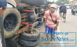 SAMIN-NEWS.com, PATI – Jalan Pati-Tayu tadi pagi pukul 10.00 WIB dibuat ramai oleh peristiwa kecelakaan tunggal truck. Tepatnya sebelah selatan kantor Polsek baru Wedarijaksa turut Desa Sukoharjo, Kecamatan Wedarijaksa, Senin (15/6/2020).
