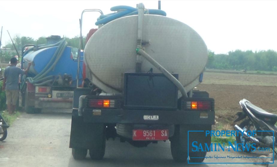 Jika mobil tanki air berpelat merah siapa saja mengetahui bahwa itu adalah fasilitas milik pemerintah untuk mengangkut air bersih yang disalurkan kepada warga, utamanya di Kecamatan Jakenan dan Kecamatan Winong yang sampai sekarang masih membutuhkan air bersih karena turunnya hujan yang menandai terjadinya pergantian musim dari kemarau ke musim penghujan, ternyata belum mampu mendatangkan air secara maksimal. Sebab, sampai saat ini masih banyak sumur warga yang airnya masih kering karena hujan awal turun selain belum merata juga belum maksimal, sehingga kebutuhan air bersih warga di wilayah kecamatan tersebut dan sekitarnya tentu masih harus disuplai oleh pihak-pihak yang menaruh kepedulian untuk menyalurkan bantuan air bersih kepada mereka, maka hal itu biasa dilayani oleh para pengusaha penyedia air bersih dengan mobil-mobil tanki miliknya yang tiap hari hilir-mudik ke wilayah kecamatan yang masih membutuhkan air tersebut.