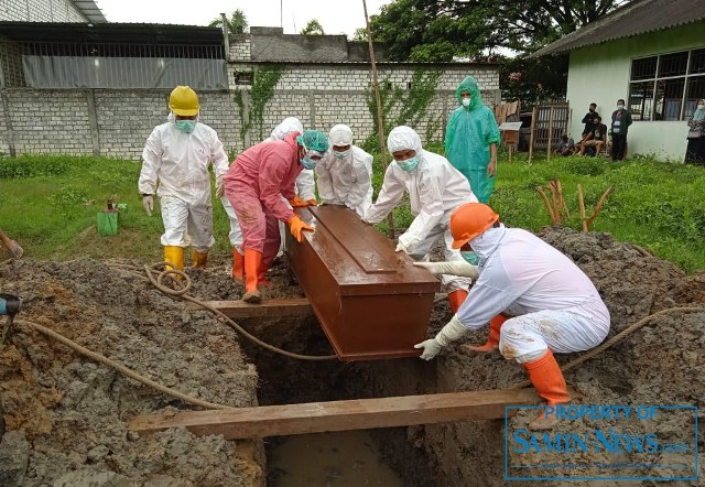 SAMIN-NEWS.com, PATI – Mengawali pemakaman standar protokol Covid-19, Jumat (11/12) tadi pagi berlangsung di Desa Bajomulyo, Kecamatan Juwana, untuk jenazah seorang perempuan warga desa setempat. Sebelum meninggal, almarhumah sempat d rawat di Rumah Sakit (RS) Fastabiq Sehat Pati, dan pemakaman pun baru dilaksanakan sekitar pukul 10.00.