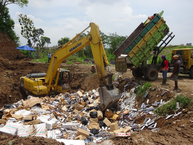 Pemusnahan dilakukan dengan membakar sebagian rokok ilegal di halaman Kantor Bea Cukai Kudus, dan selanjutnya seluruh barang dimusnahkan dengan cara ditimbun di Tempat Pembuangan Akhir (TPA) sampah Sukoharjo, Kecamatan Margorejo, Pati. Sedangkan BMN yang dimusnahkan sebagian besar merupakan rokok tanpa pita cukai atau rokok polos dan sisanya dilekati pita cukai palsu siap edar.