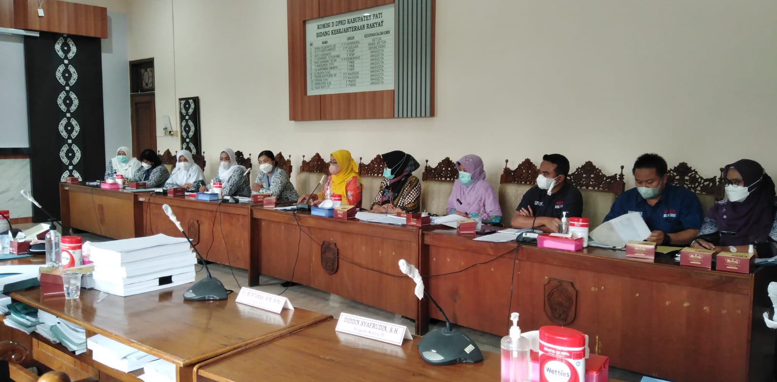 Hadir dalam kesempatan Ketua Komisi D, Wakil Ketua Komisi D serta beberapa anggota Komisi D. Selain itu datang juga dari OPD terkait, Dinas Kesehatan serta BKPP Pati.