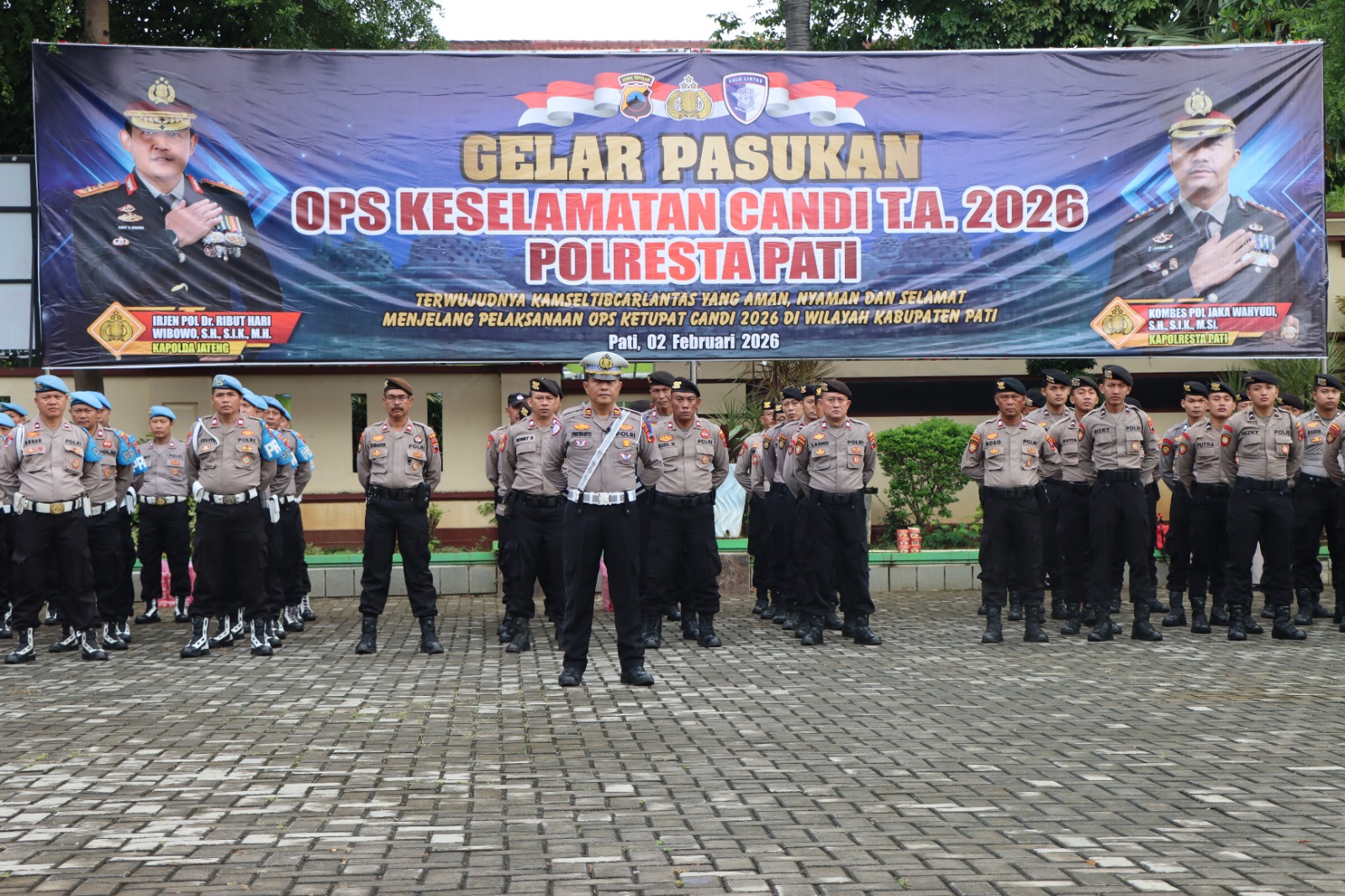 SAMIN-NEWS.com – Polresta Pati menggelar Apel Gelar Pasukan Operasi Keselamatan Candi 2026 di halaman Mapolresta Pati, Senin (2/2/2026) pagi. Apel ini menandai dimulainya operasi lalu lintas yang mengedepankan keselamatan dan pendekatan humanis kepada masyarakat.