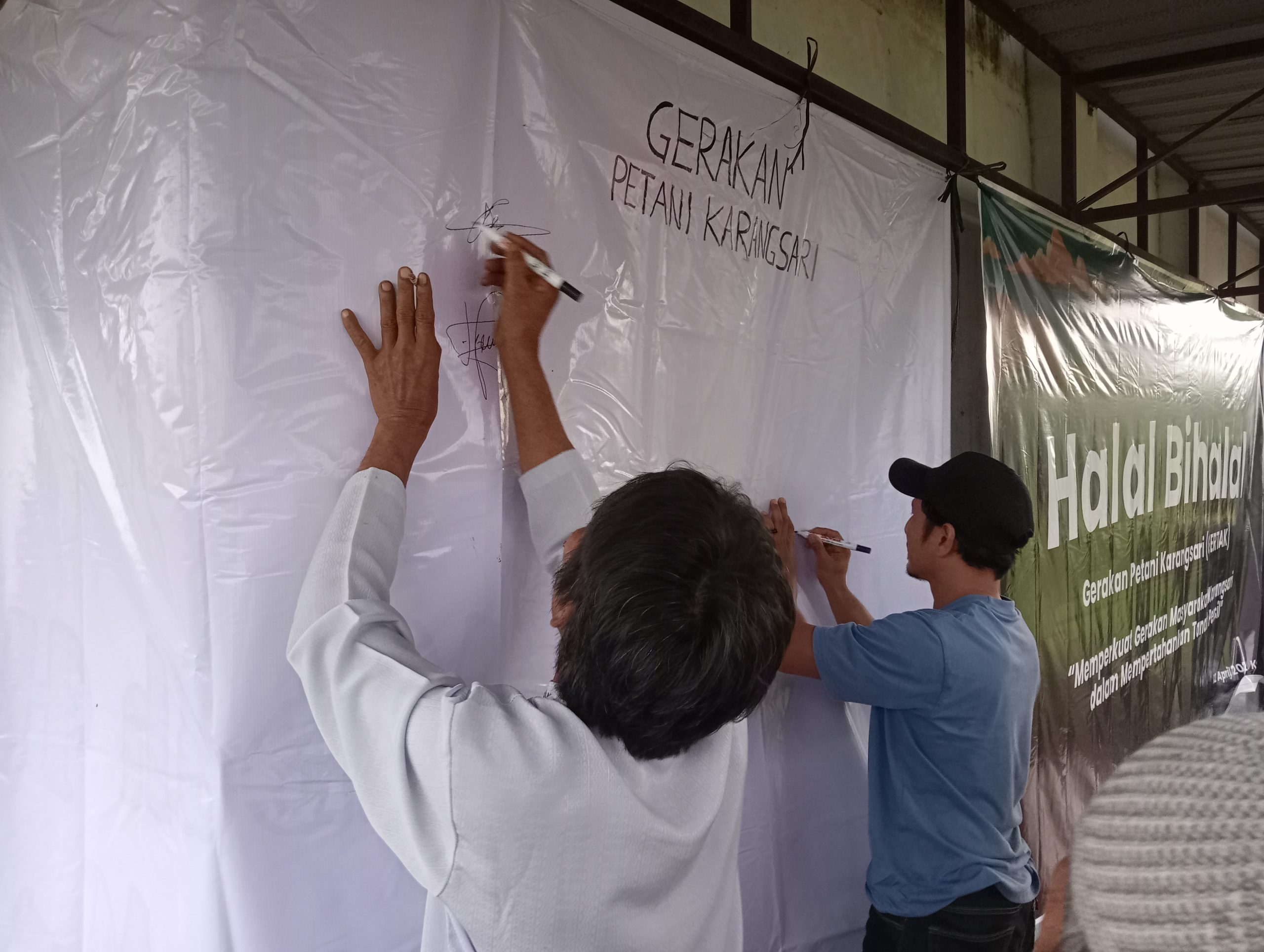 Pada acara yang dibalut dengan momen Halal Bi Halal itu, warga yang mayoritas adalah petani menolak penguasaan hak atas tanah seluas 170 hektare di Desa Karangsari.